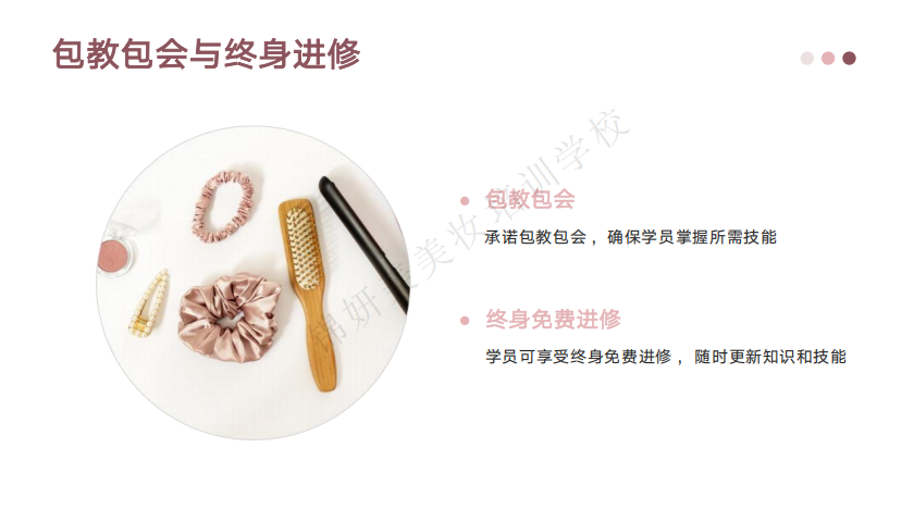 2:五大艺术精髓全覆盖:提供化妆、美甲、美容、纹绣、美睫全方位的培训课程,满足学员的多样化需求。